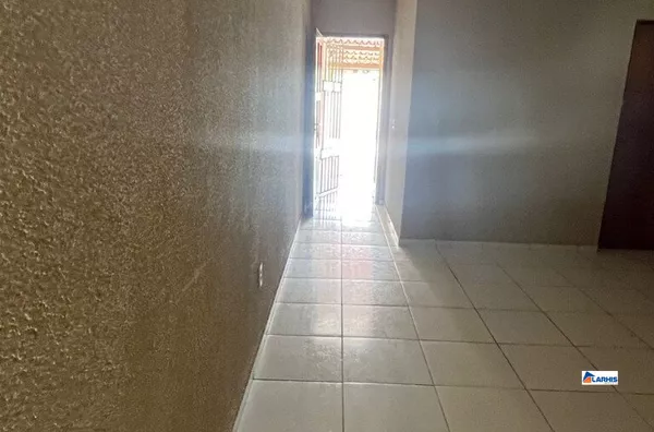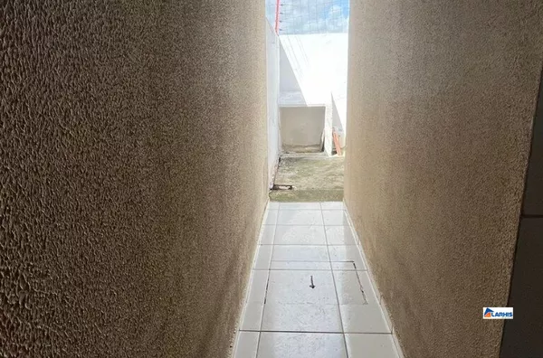Casa com área externa toda revestida e portão automático.